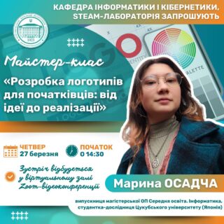 🧑🏼💻🇺🇦 Кафедра інформатики і кібернетики, STEAM-лабораторія запрошують усіх охочих на майстер-клас «Розробка логотипів для початківців: від ідеї до реалізації»!