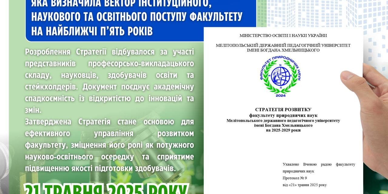 ✅📑 21 травня 2025 року на засіданні Вченої ради факультету природничих наук відбулося затвердження Стратегії розвитку факультету природничих наук, яка визначила вектор інституційного, наукового та освітнього поступу факультету на найближчі п’ять років.