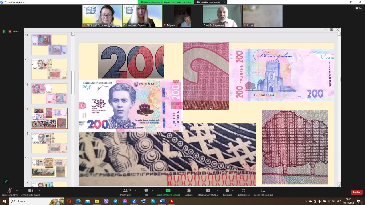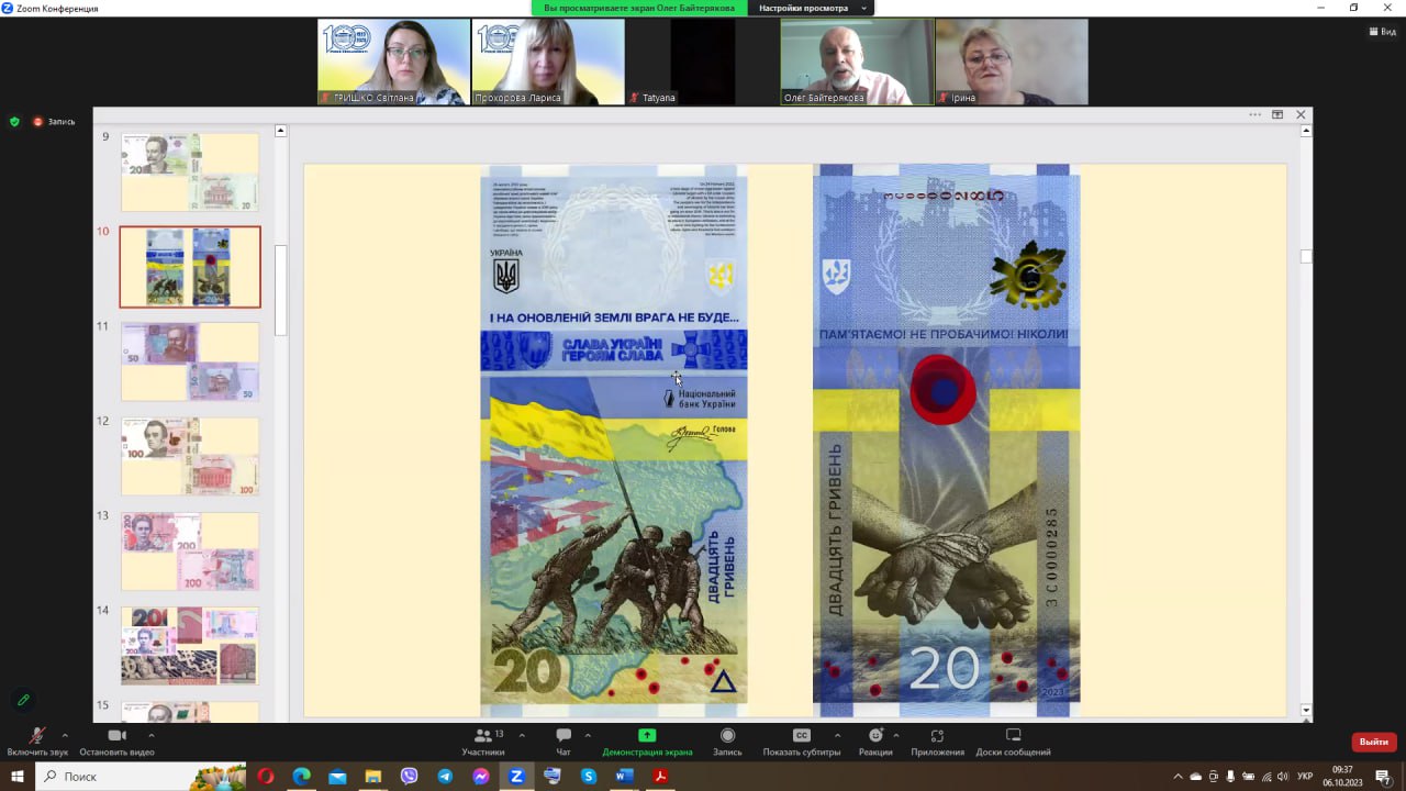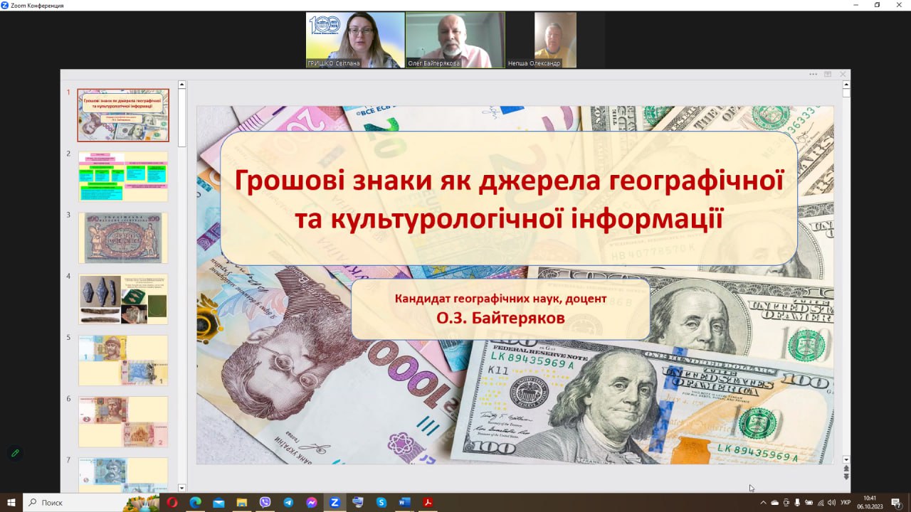 Під час майстер-класу О. Байтеряков поділився досвідом і власною методикою застосування грошових знаків в географічній освіті для формування ключових компетентностей у здобувачів вищої освіти. В ході майстер-класу було проаналізовано культурологічний зміст української національної валюти та визначено методику її застосування для патріотичного виховання молоді.