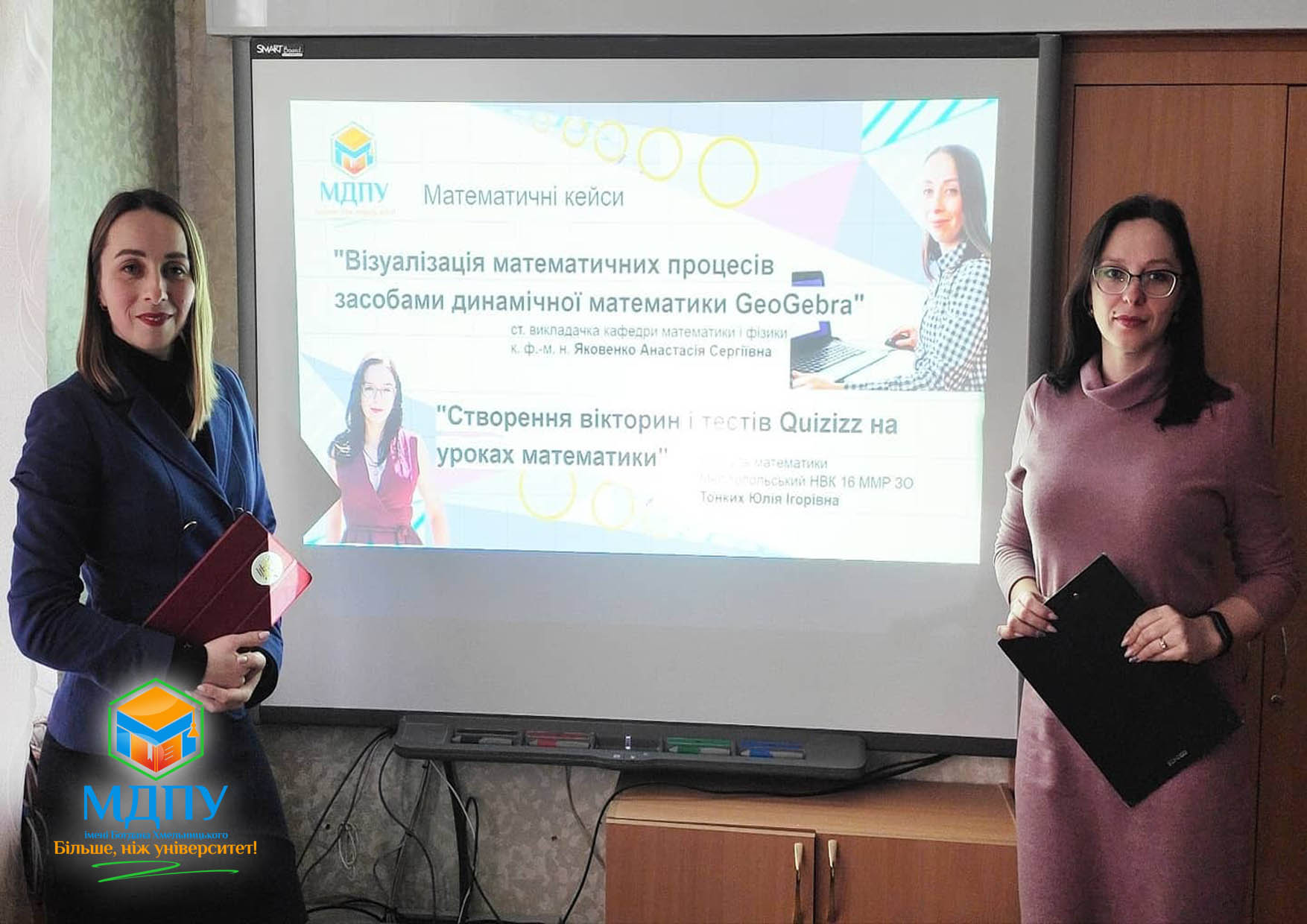 23 березня 2021 року в межах ІІІ Відкритого освітньо-наукового форуму з міжнародною участю «Класична наука для Нової української школи» кандидаткою фізико-математичних наук, старшою викладачкою кафедри математики і фізики Анастасією Яковенко та вчителем математики Мелітопольського НВК № 16 Юлією Тонкіх були проведені математичні кейси на тему: «Візуалізація математичних процесів засобами динамічної математики GeoGebra» та «Створення вікторин і тестів Quizizz на уроках математики» для вчителів математики закладів середньої освіти, науково-педагогічних працівників університету та здобувачів вищої освіти.