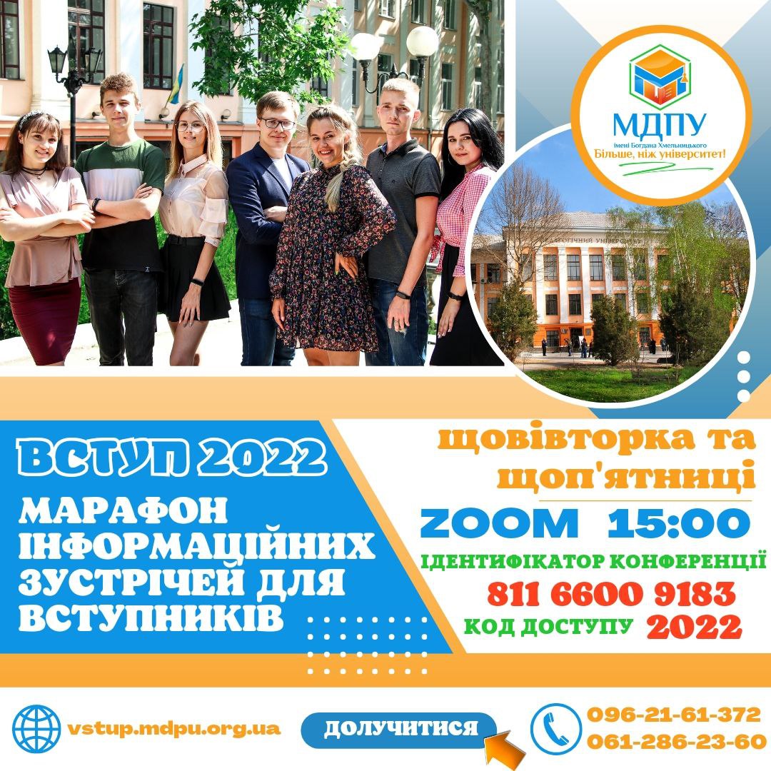 Ми запрошуємо вас стати учасниками серії інформаційних зустрічей для вступників, які відбуватимуться щотижня у вівторок та п’ятницю о 15.00 на платформі Zoom за посилання: