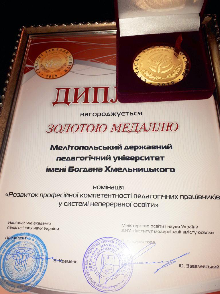 За результатами тематичного конкурсу роботу на тему «Диктант як одна зі сходинок на шляху усунення труднощів під час вивчення української мови» (автор – кандидат філологічних наук, доцент кафедри української мови Мінкова Ольга Федорівна), нагороджено золотою медаллю у номінації «Розвиток професійної компетентності педагогічних працівників у системі неперервної освіти».