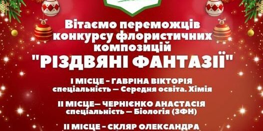 Сьогодні ми підводимо підсумки онлайн-конкурсу флористичних різдвяних композицій “РІЗДВЯНІ ФАНТАЗІЇ” та вітаємо наших переможців: