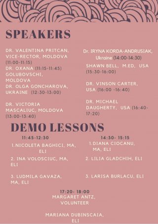 Так, 6 травня 2021 року доцент кафедри іноземних мов Гончарова О.А. виступила в якості доповідача на пленарному засіданні Міжнародного форуму для вчителів англійської мови «Reframing Teaching in a New Era», який було організовано як результат плідної співпраці Бельцького державного університету імені Алеку Руссо (Молдова), Університету Арканзасу (США), а також XXXL Міжнародного Інституту Поколінь (XXXL International Institute of Generations).
