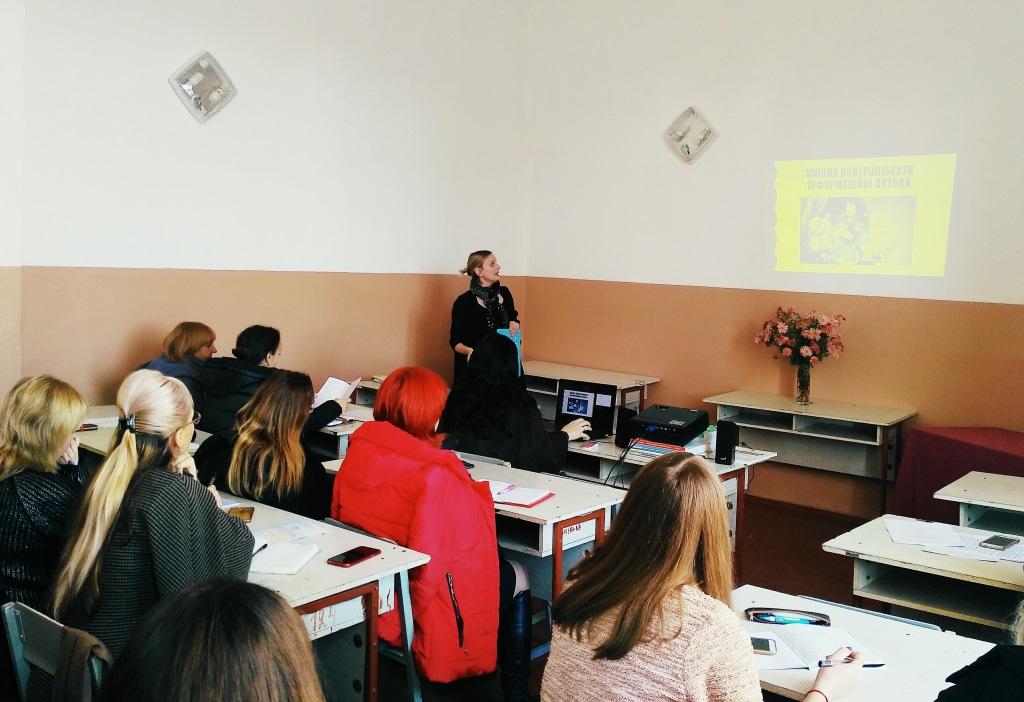 Мета заходу підвищення професійної кваліфікації вчителів музичного мистецтва – розвиток медіа компетентності. Були розглянуті теоретичні і практичні питання, в яких йшлося про уміння, навички та особистісні якості, якими повинен володіти вчитель музичного мистецтва для того щоб користуватися медіа-ресурсами і інформаційними технологіями у процесі викладання музичного мистецтва в ЗЗСО.