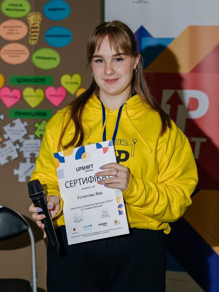 Голова Студентської Ради хіміко-біологічного факультету, заступниця голови Обласної Студентської Ради Яна Устюгова стала учасницею буткемпу 5-ої хвилі програми UPSHIFT у Запоріжжі у складі команди “Моноліт” з 10 по 13 травня.