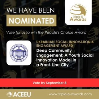 Маємо чудову новину — наш проєкт «Глибока залученість громади: модель соціальних інновацій молоді у прифронтовому місті» ‼️🎉 увійшов до фіналу престижної премії “TRIPLE E AWARDS” 2025 ACEEU EUROPE-EUROPE FORUM у номінації «Премія за соціальні інновації та активність в Україні»!
