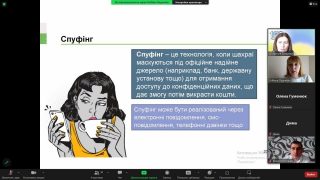 На факультеті інформатики, математики та економіки в рамках Всеукраїнської інформаційної кампанії з платіжної безпеки #ШахрайГудбай Національного Банку України @NationalBankofUkraine та @talan.nbu 26 травня 2023 року викладачками кафедри управління та адміністрування Наталею Захаровою та Світланою Осипенко була проведена лекція «Поради з кібербезпеки та схеми шахрайства у воєнний час».