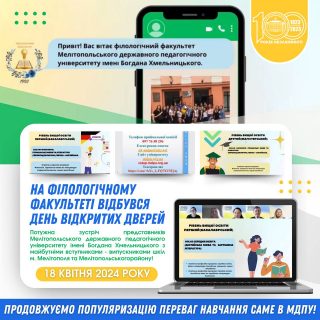 18 квітня 2024 року відбулась зустріч представників Мелітопольського державного педагогічного університетуімені Богдана Хмельницького з майбутніми вступниками – випускниками шкіл м. Мелітополя та Мелітопольськогорайону, яка була організована філологічним факультетом.