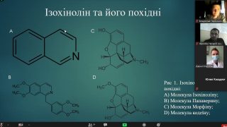Від Мелітопольського державного педагогічного університету імені Богдана Хмельницького виступив студент магістратури спеціальності 014.05 СО Біологія Володимир Хомутовський, який зробив огляд літератури та розповів про сучасні методах ідентифікації алкалоїдів ізохінолінового ряду в біологічних об’єктах.
