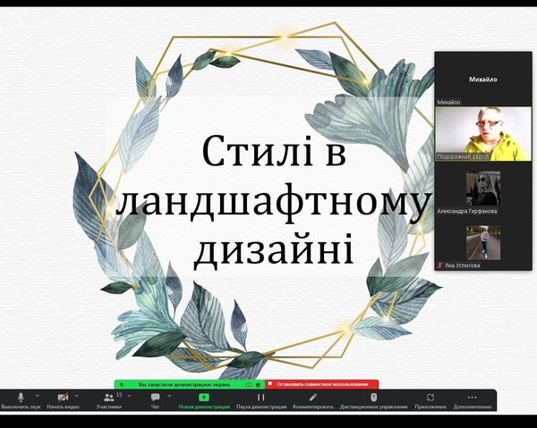 Вебінар завершився обговоренням сучасних стилій ландшафтної архітектури і значенням садів для для фізичного і психологічного здоров’я.