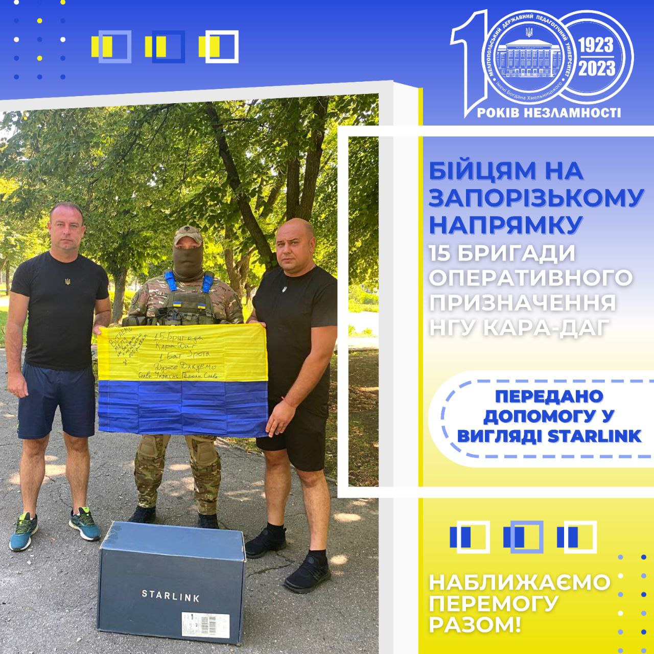 Тому черговий раз на волонтерських засадах допомагає нашим хоробрим воїнам! Сьогодні бійцям на запорізькому напрямку 15 бригади оперативного призначення (1 батальйон 3 рота) НГУ “Кара-Даг” від ГО «МДПУ зараз і завжди» було передано допомогу у вигляді глобальної супутникової системи Starlink!