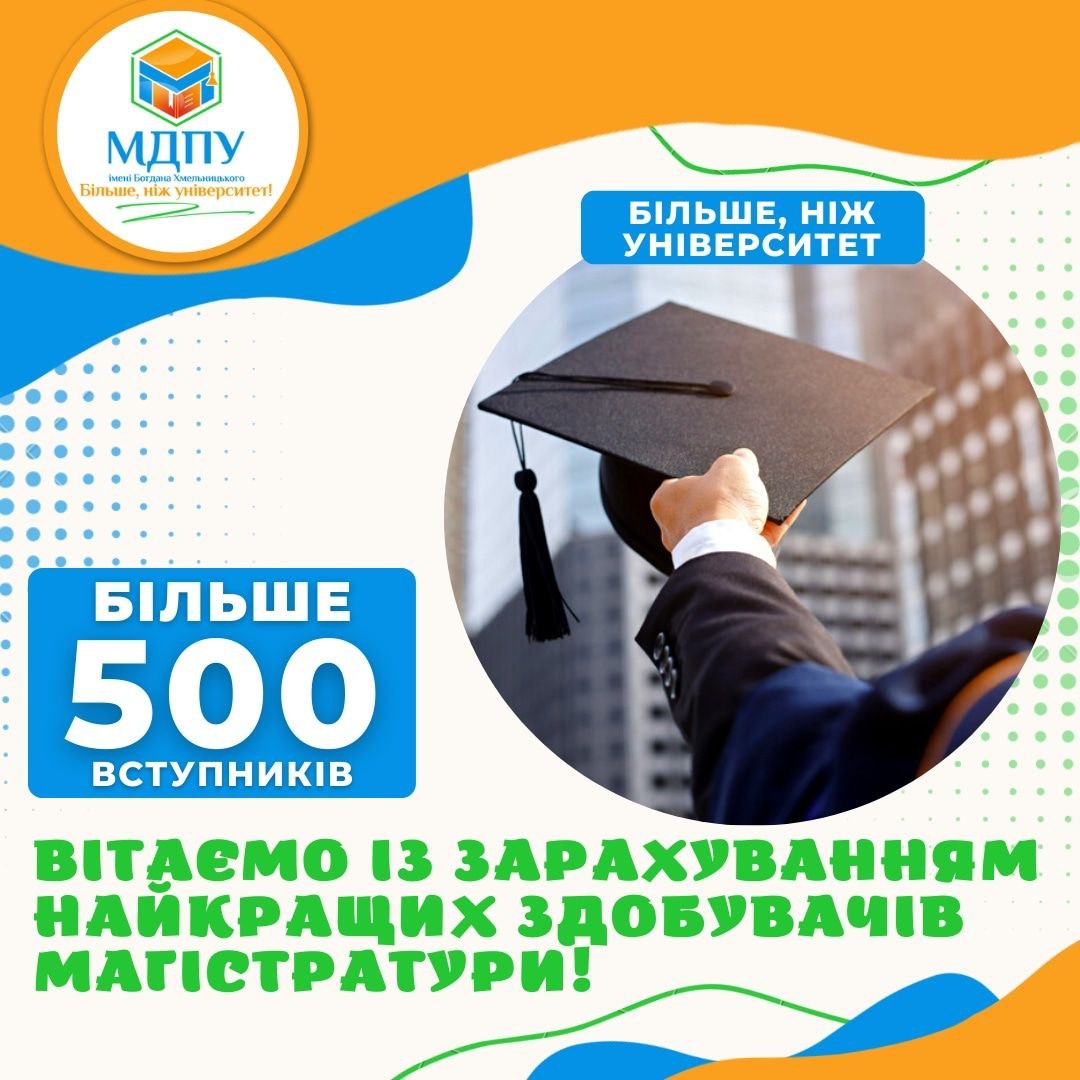 Незважаючи на те, що цьогорічна вступна кампанія проходила в складних умовах внаслідок повномасштабного вторгнення країни-агресора на суверенну територію України, ми щасливі вітати у родині нашого університету більше 500 нових здобувачів за освітнім рівнем МАГІСТР.