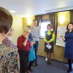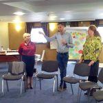 Двадцять викладачів, вчителів з різних міст України дізналися про те, що сприяє успіху у роботі тренера; що дає можливість приймати правильні рішення; як укласти контракт з групою; як проникнути у біополе групи та сформувати конгруентність; який основний критерій досягнення успіху у тренінгу; як побудувати платформу і навчити інших робити так само, застосовуючи тренінгову технологію; у чому полягають секрети навчання дорослих; в чому полягають причини труднощів під час проведення тренінгу; як діяти тренеру, якщо дорослі слухачі не хочуть змінювати установки. У спільній взаємодії розробили та презентували структуру тренінгу за обраними темами. Головна умова вдалого тренінгу – відповідати запитам слухачів та змінити їх ставлення до визначеної проблеми через розвиток критичного мислення. Для того, щоб переконатися, як важко жити в епоху хаотичних різнобічних комунікацій, великої кількості джерел інформації, була застосована гра «Білий шум». Учасники переконалися в тому, що інформація хаотична, інформація швидко змінюється, ми не встигаємо виробити оціночні судження, часто сприймаємо тільки невеличкий шматочок правди, живемо в час, коли знайти інформацію не проблема, а проблема її проаналізувати та на цій основі побудувати об’єктивну картину світу. Яскравою ілюстрацією цього процесу стала гра «Секрет Джованні». На модулі були представлені фактори, що впливають на якість навчання дорослих, мова йшла про метод Колба і піраміду Блума. А у грі «Крах корабля», запропонованою Тетяною Івановою, продемонстровано що без чітко встановлених цілей, визначених потреб і плану дій, ми не те, що не «попливемо» по процесу проведення свого тренінгу, нам і «вижити» не вдасться, без усвідомлення пріоритетів роботи. В свою чергу, Ерік Альбрехт наочно зобразив, наскільки важливо виробити міцний фундамент взаємодії між групою та спікером. При цьому мати вміння не лише розповідати/навчати, а й вислуховувати/аналізувати.