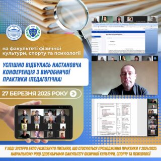 💻🎯27 березня о 16:00 та о 16:30 на платформі Zoom відбулися настановчі конференції з виробничих практик для здобувачів IV курсу першого (бакалаврського) та І курсу другого (магістерського) рівнів вищої освіти денної форми навчання факультету факультету фізичної культури, спорту та психології для наступних спеціальностей: