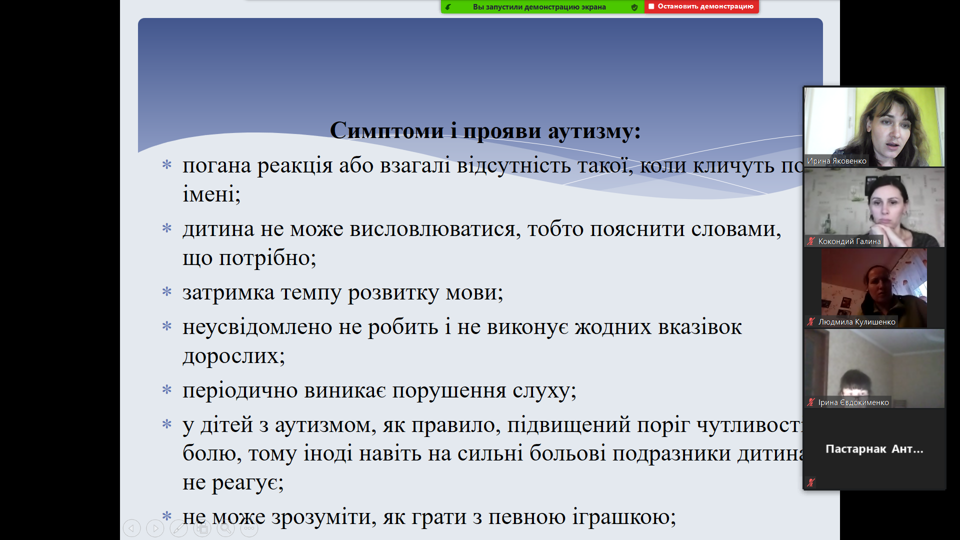 Учасники тренінгів мали змогу на практиці побачити методику роботи з дітьми зазначеної категорії порушень та віртуально відвідати Освітньо-науковий центр соціокультурного розвитку дитини Мелітопольського педагогічного університету імені Богдана Хмельницького.
