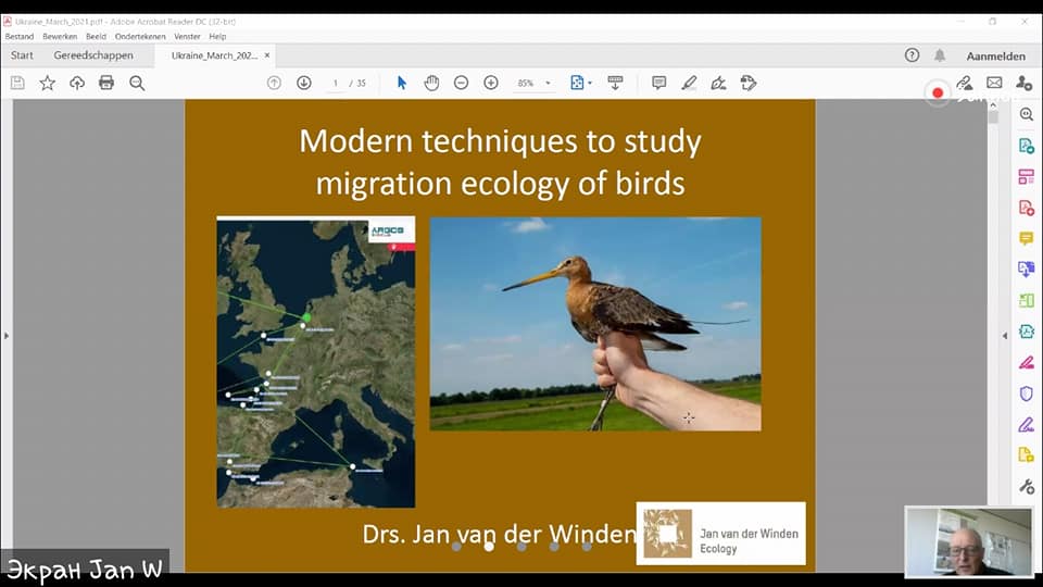 30 березня 2021 р. для здобувачів ІІІ освітньо-наукового рівня спеціальностей 091 Біологія та 101 Екологія, науково-педагогічних працівників хіміко-біологічного факультету прочитав лекцію Jan van der Winden, запрошений науковий співробітник University of Groningen: Conservation Ecology Group/ Global Flyway Network (Нідерланди) на тему «Modern techniques to study migration ecology of birds”.