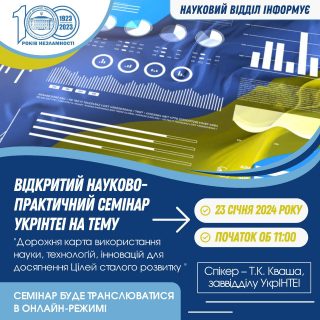 23 січня 2024 року об 11:00 відбудеться відкритий науково-практичний семінар УкрІНТЕІ на тему