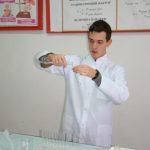 Асистент Олександр Володимирович Яковійчук продемонстрував  досліди з впливу різних факторів на структуру білка.