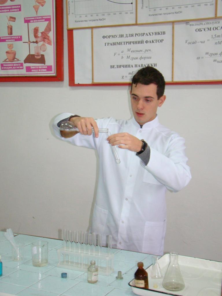 Асистент Олександр Володимирович Яковійчук продемонстрував  досліди з впливу різних факторів на структуру білка.