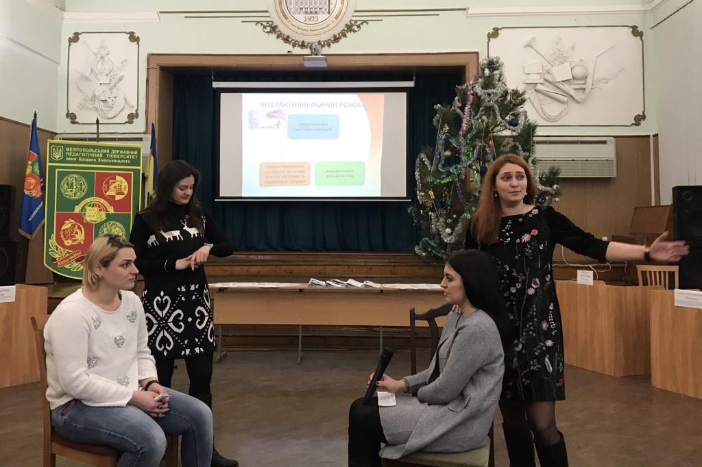 В рамках І Відкритого освітнього форуму «Нова українська школа: партнерство в дії», що проходив 10 січня 2019 року в стінах Мелітопольського державного педагогічного університету імені Богдана Хмельницького, викладачі кафедри психології – д.психол.н., доцент Царькова О.В., к.психол.н., доцент Прокоф’єва О.О. та ст.викладач Варіна Ганна провели науково-практичний семінар «Сучасні батьківські Збори: педагогіка партнерства і толерантності».