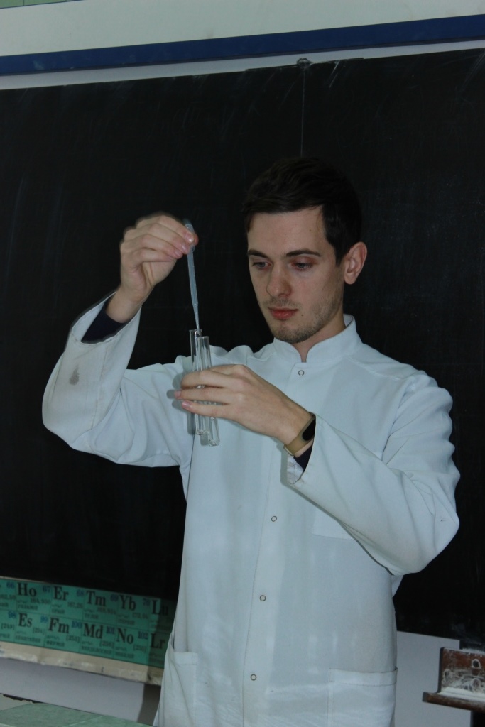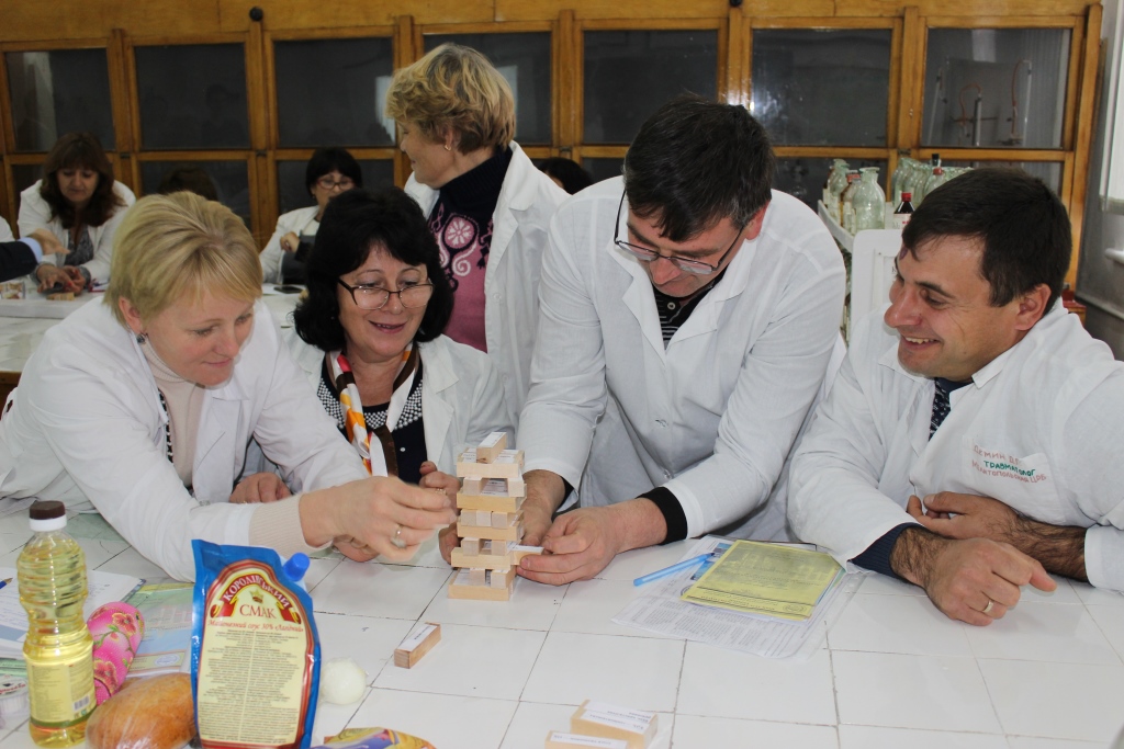 На локації № 1 «Хімія» вчителі ознайомилися з вітчизняними та міжнародними вимогами до сучасного уроку та організації проектної діяльності на уроках хімії з використанням інноваційних технологій та методів організації освітнього процесу; взяли участь у хімічних експериментах (проведення якісного визначення вітамінів у природній сировині) із використанням реактивів, які можна знайти у побуті, господарчому магазині або аптеці; поринули у науково-дослідницьку діяльність учнів мелітопольських закладів освіти і відділенні Малої академії наук Мелітопольської міської ради Запорізької області.