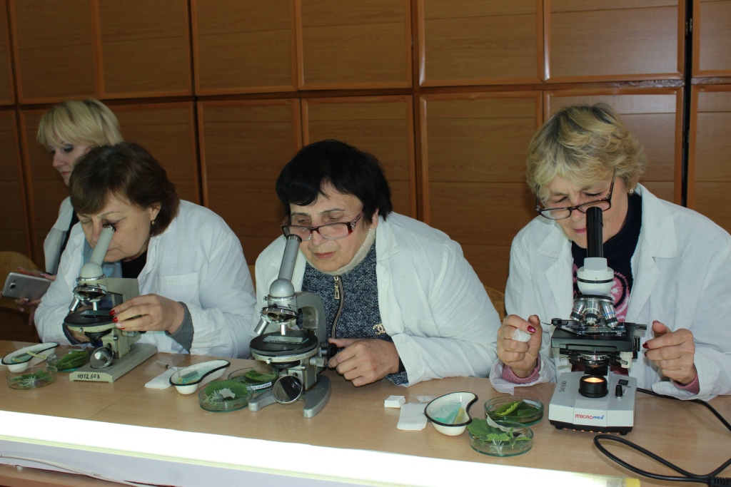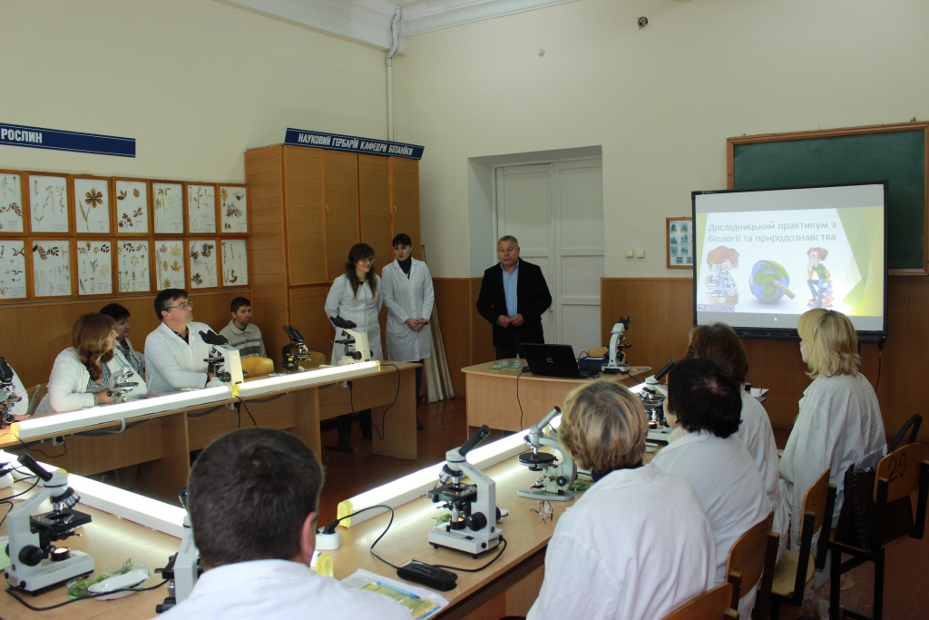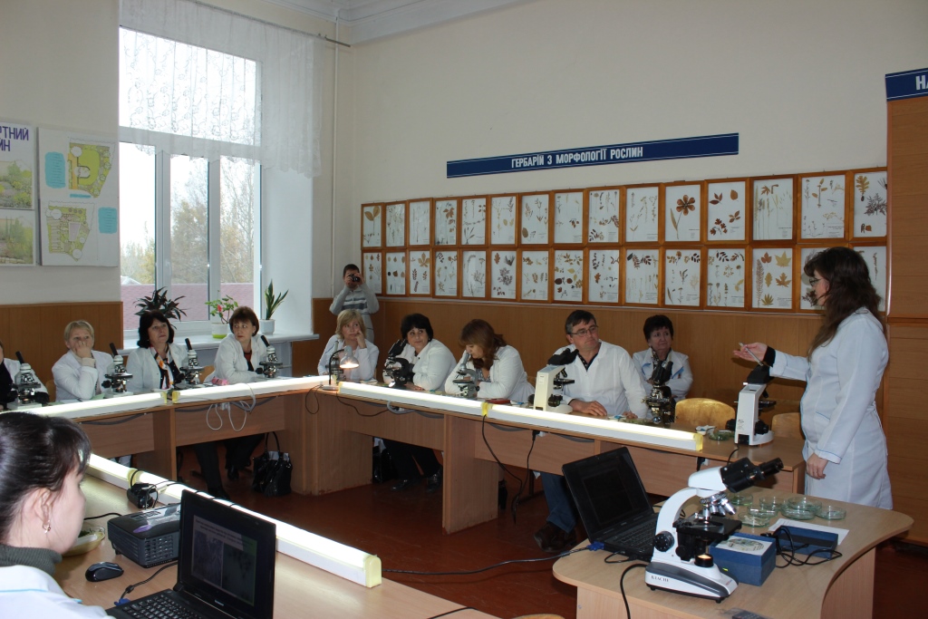 На локації № 2 «Біологія» учасники семінару взяли участь у дослідницькому практикумі з біології та природознавства «Методика виготовлення і візуалізації рослинних об’єктів на уроках біології і природознавства», під час якого вчителі виготовили тимчасові мікропрепарати покривної тканини кімнатних рослин, підрахували кількість продихових комплексів в полі зору окуляру, виявили різницю між адаксіальною та абаксіальною сторонами листа.