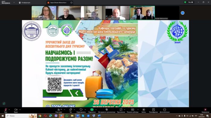 🎓🥳26 вересня 2025 року кафедрою географії та туризму Мелітопольського державного педагогічного університету імені Богдана Хмельницького було організовано і проведено в онлайн-форматі святкування Всесвітнього дня туризму.
