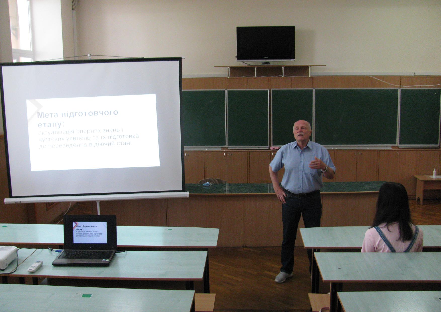 Завідувач кафедри неорганічної хімії та хімічної освіти, професор Максимов О.С. ознайомив присутніх та проаналізував три теорії формування понять: 1) асоціативно – рефлекторну концепцію з засвоєння знань (автори: І. П. Павлов, Н. А. Менчинська В.В., Давидов, Д.Б. Ельконін), 2) теорію поетапного формування розумових дій (автори: П.Я. Гальперін, Н.Ф. Тализіна), 3) алгоритмізацію навчання (автори: І.І.Тихонов, І.Я.Лернер В.П. Беспалько).