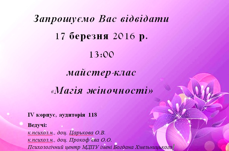 Тренінг «Магія жіночності» для студентів та викладачів університету –