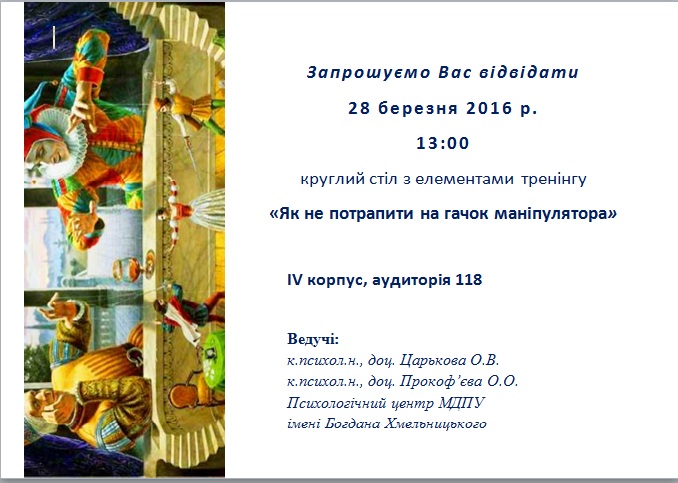Круглий стіл «Як не потрапити на гачок маніпулятора» для студентів IV-Vкурсів –