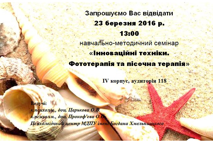 Семінар «Фото і пісочна терапія» для студентів та викладачів університету- Прокоф’єва О.О.,