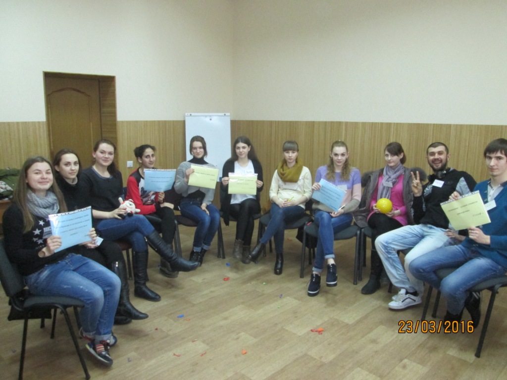 03.11.2016 року доцентом кафедри психології Гузь Н.В. був проведений психологічний тренінг розвитку комунікативних навичок «Заговори, щоб я тебе побачив» для студентів першого курсу ННІСПМО, які проявили інтерес до ефективної комунікації, виявили бажання відкрити щось нове в собі.