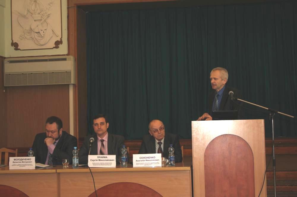 З вітальним словом до членів конференції звернувся ректор університету, професор Валентин Молодиченко. Він наголосив на тому, що в історії нашої країни постать видатного гетьмана пов’язана, в першу чергу, з прагненням українського народу до волі, самостійності й справедливості. Саме Богдан Хмельницький розпочав процеси формування української нації, становлення України як держави. Він був блискучим політиком і дипломатом. Для державотворчої роботи гетьман з надзвичайною мудрістю добирав талановитих однодумців-патріотів, серед яких було понад 100 випускників Києво-Могилянської та Острозької академій. І сьогодні завдання нашої студентської молоді не лише досліджувати, а й примножувати здобутки Богдана Хмельницького, продовжувати його справу, оскільки майбутнє нашої країни за молодими й свідомими представниками української нації.