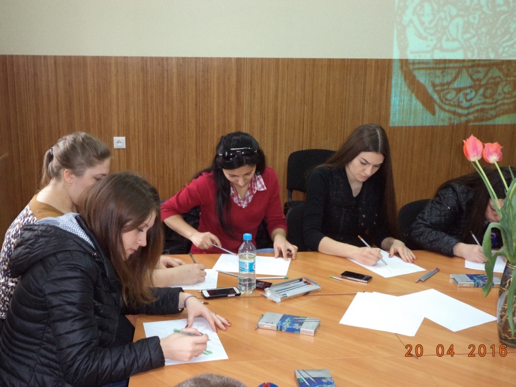 Щорічно з нагоди Всеукраїнського дня психолога (23 квітня) кафедра психології організовує Тиждень психології. 2016 рік не став винятком. 20 квітня доцентом Прокоф’євою О.О. та доцентом Царьковою О.В. було проведено майстер-клас «Дерево як образ «Я» Ведучі майстер-класу познайомили студентів та викладачів ННІ СПМО з особливостями архетипу світового дерева, продемонстрували елементи глибинної психокорекції, арт-терапії, зокрема ізо-терапії, групової роботи з асоціативними метафоричними картами, провели релаксаційну техніку «Ліс». Майстер-клас дав можливість прояснити особливості власної Я-концепції, поглибити процеси саморозкриття, розвинути вміння знаходити індивідуальні особливості й ресурси власної психіки. Матеріал підготувала Прокоф’єва О.О. |