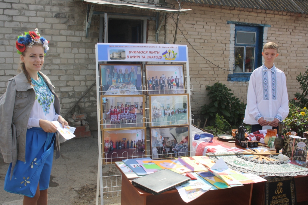Гості свята були запрошені на ярмарок «Дельований обрій», де вони змогли пізнати культуру різних національностей, відвідати кроскультурну виставку Мелітопольських загальноосвітніх шкіл. Мелітопольська ЗОШ І–ІІІ ступенів № 11 представила експонати Музею інтеркультурності, Мелітопольська ЗОШ І–ІІІ ступенів № 8 – вироби членів учнівського гуртка «Майстерня іграшки-сувеніру» (керівник – Валентина Дмитрівна Сьомик), Костянтинівське районне навчально-виховне об’єднання (гімназія – Мала академія наук) № 1 «Таврія» – виставку з природних матеріалів гуртка декоративно-ужиткового мистецтва «Флористика» (керівник – вчитель біології Олена Миколаївна Соколова), навчально-виховний комплекс № 16 м. Мелітополь – вироби творчої групи «ШОК» (Шкільного об’єднання культури) (керівник – Ольга Валеріївна Тарасенко). Творча група «ШОК» провела майстерклас із виготовлення стрічок з національною символікою.
