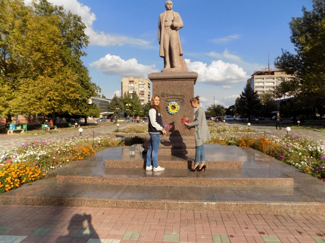 Литвиненко Анна та Шупелик Вікторія поклали до пам’ятника квіти. Хомич Ольга та Пишна Ірина з великим задоволенням фотографували цей захід біля університету та пам’ятника Кобзарю.