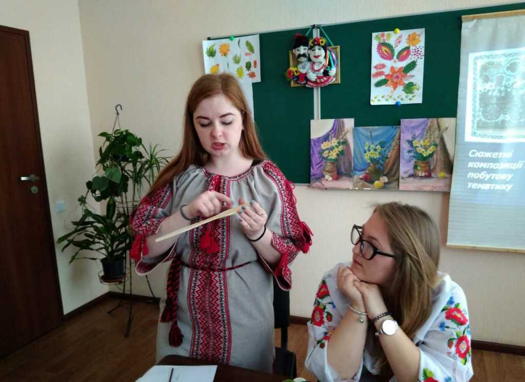 У ході проведення майстер-класу студентка магістратури 516-с групи ННІ СПМО Шевага Л. підготувала презентацію «Чарівний світ Петриківського розпису», яка містила інформацію про сучасну технологію Петриківського розпису: