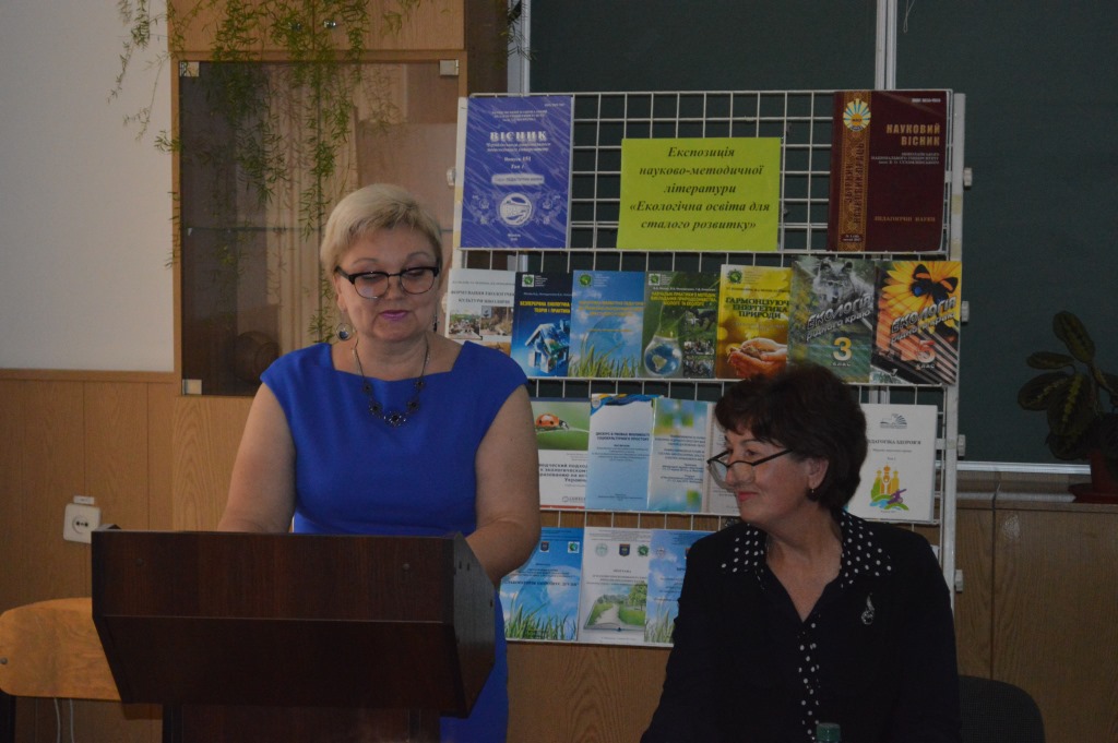 Всі учасники мали змогу ознайомитись з експозицією науково-методичної літератури «Екологічна освіта для сталого розвитку». Відповідальними за презентацію були Мелаш В.Д. – кандидат педагогічних наук, доцент кафедри початкової освіти Мелітопольського державного педагогічного університету імені Богдана Хмельницького, керівник студентської наукової лабораторії «Екологічна освіта для сталого розвитку», а також Саєнко Ю.О. – асистент кафедри початкової освіти ННІСПМО Мелітопольського державного педагогічного університету імені Богдана Хмельницького, куратор студентської наукової лабораторії «Екологічна освіта для сталого розвитку».