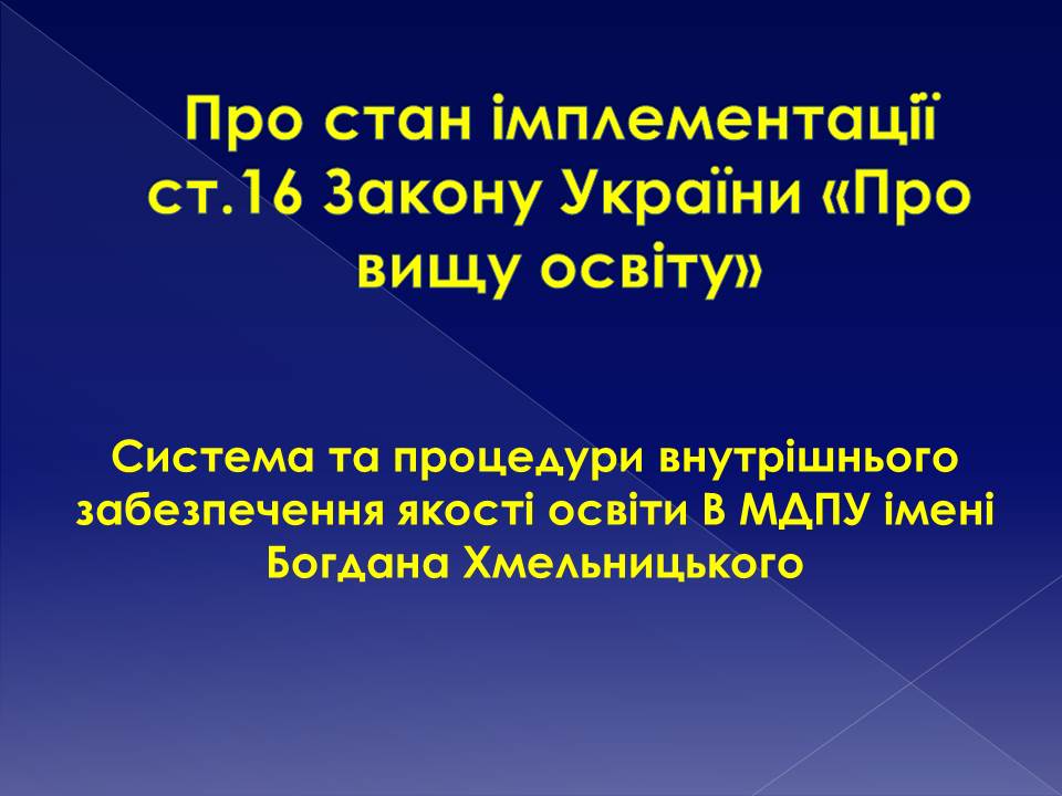 Про реалізацію першочергових заходів постійної комісії з забезпечення якості освіти в МДПУ імені Богдана Хмельницького