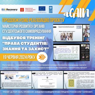 19 червня 2024 року у віртуальному залі Zoom-відеоконференції відбувся черговий тренінг на тему «Права студентів: знання та захист»!