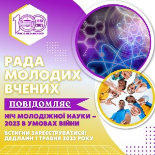 До Дня науки Рада молодих учених при Міністерстві освіти і науки України традиційно проводить науково-популярний захід для молодих учених України «Ніч молодіжної науки – 2023 в умовах війни”.