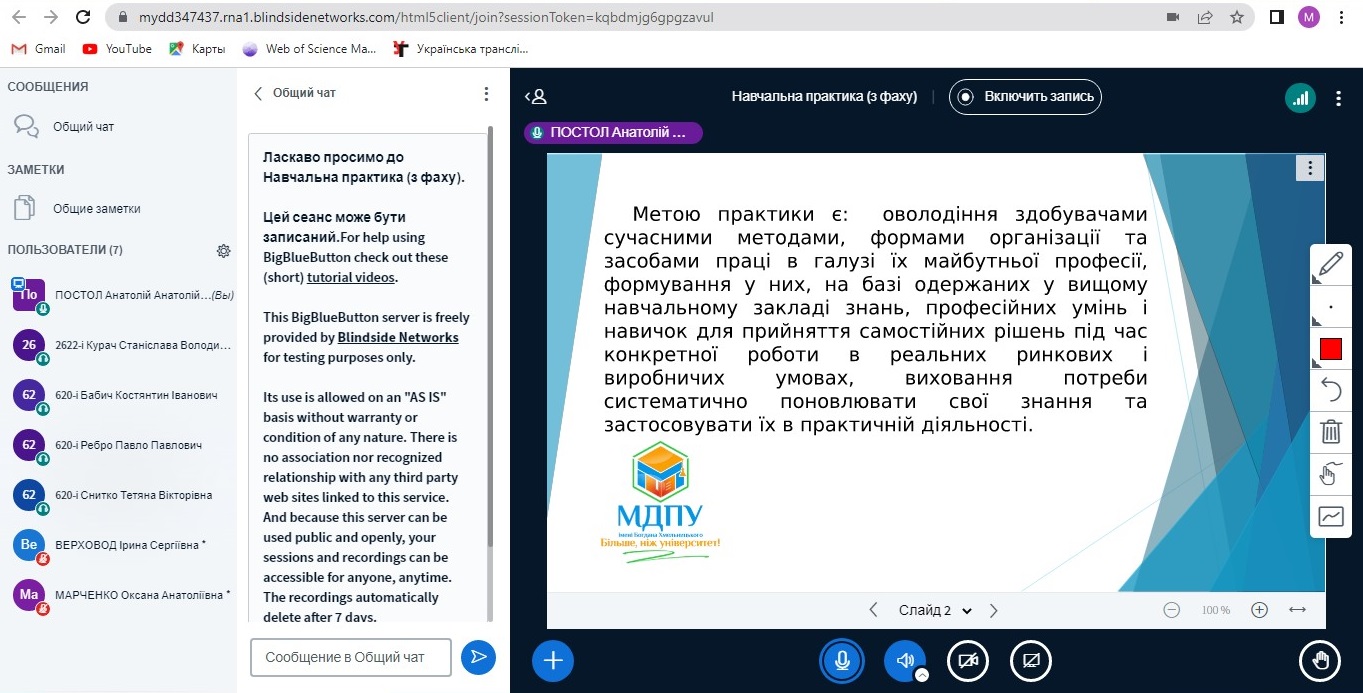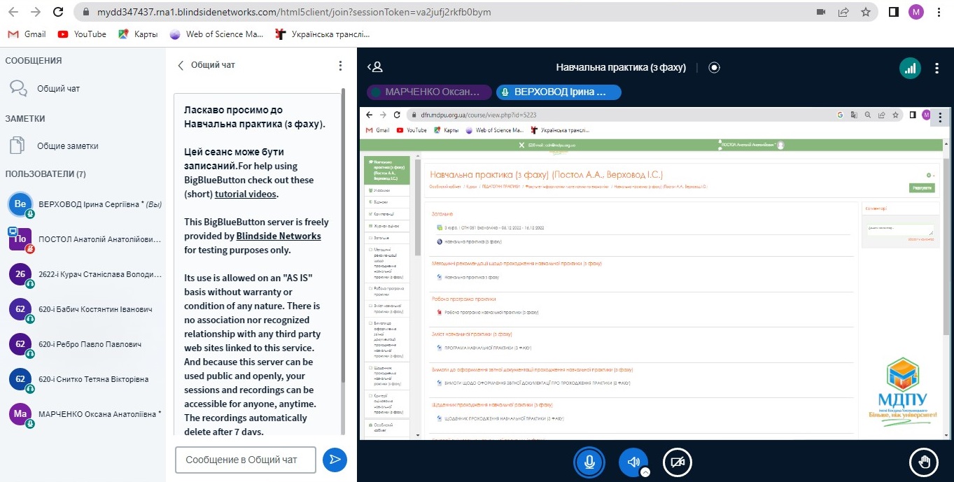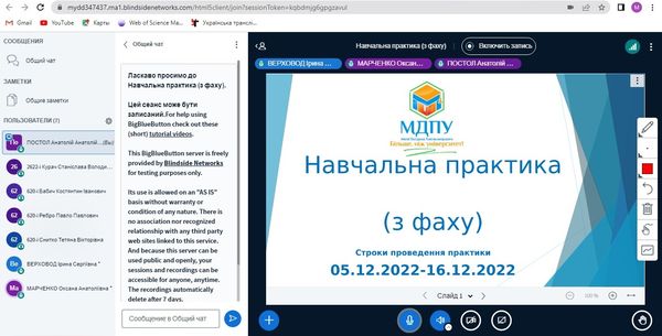 Доцент Верховод І.С. довела до відома, що усі необхідні методичні щодо проходження практики розміщенні на сайті Центру дистанційних освітніх технологій Мелітопольського державного педагогічного університету імені Богдана Хмельницького.