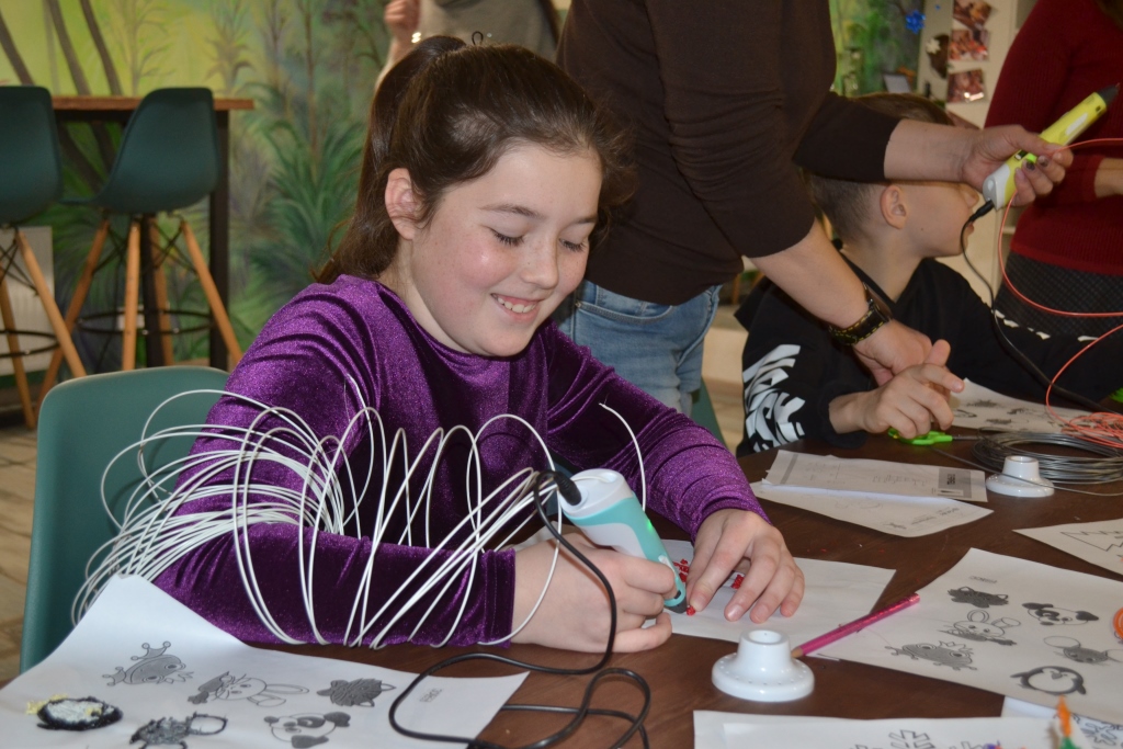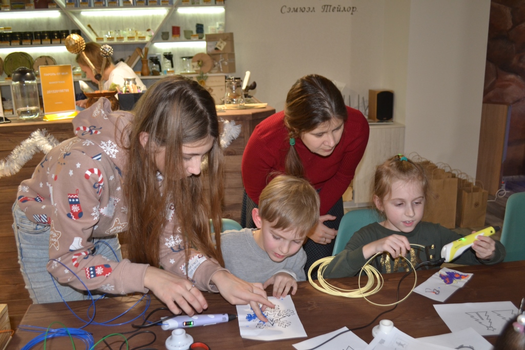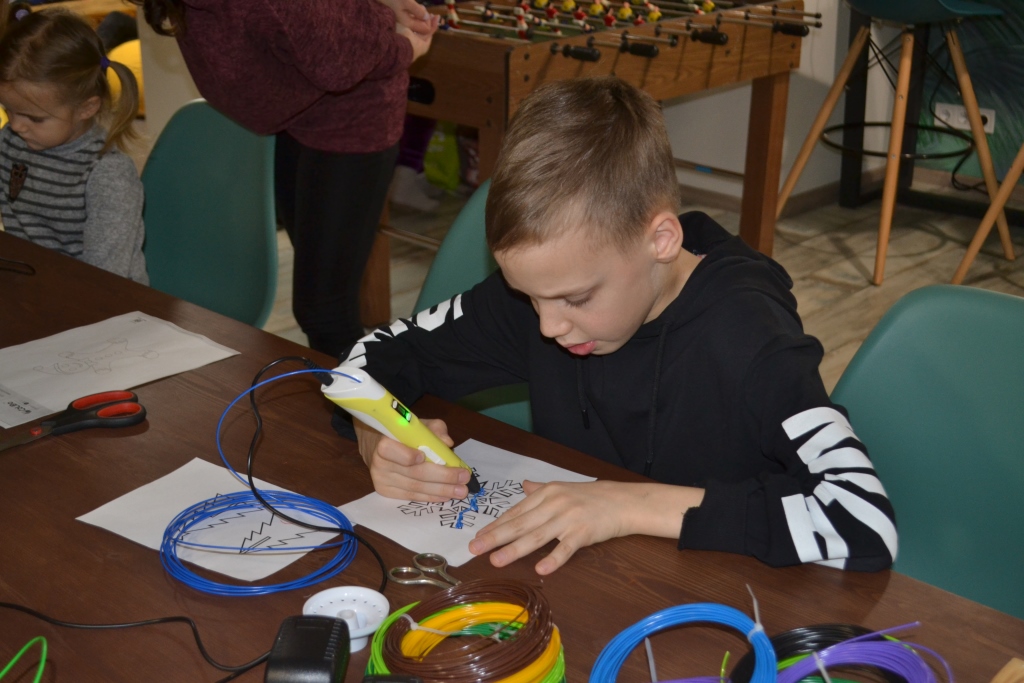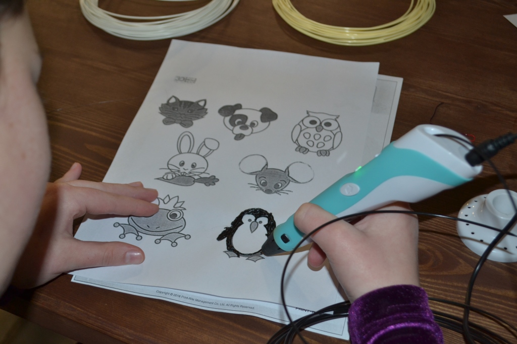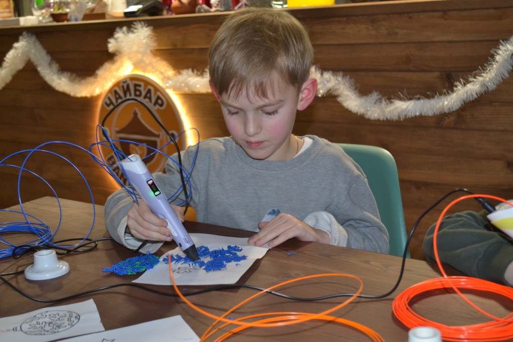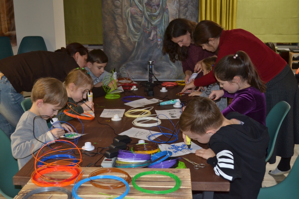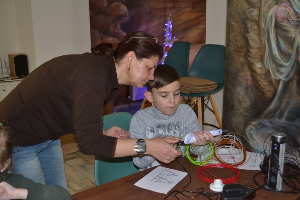 Серед 3d-шедеврів, створених учасниками майстер-класів, були як традиційні сніжинки, ялинки, ялинкові іграшки, так і казкові будиночки, символ Нового року – щур, власне придумане янголятко та ціла зимова картина.