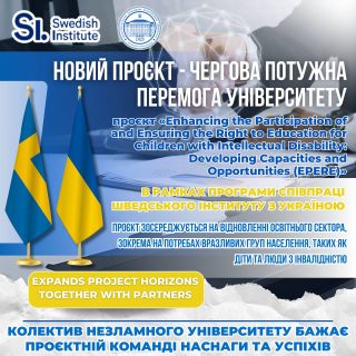 🇸🇪🎓Проєкт «Enhancing the Participation of and Ensuring the Right to Education for Children with Intellectual Disability: Developing Capacities and Opportunities (EPERE)» (сума гранту 1 999 563 SEK) в рамках Програми співпраці Шведського інституту з Україною спрямований на розвиток громадянського суспільства в Україні через підвищення участі та забезпечення освітніх прав дітей з інтелектуальними порушеннями.