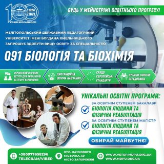 Хіміко-біологічний факультет МДПУ імені Богдана Хмельницького запрошує здобути якісну вищу освіту за УНІКАЛЬНИМИ ОСВІТНІМИ ПРОГРАМАМИ!