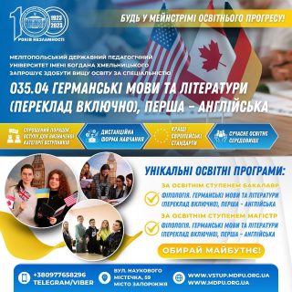 Філологічний факультет МДПУ імені Богдана Хмельницького запрошує здобути якісну вищу освіту за УНІКАЛЬНИМИ ОСВІТНІМИ ПРОГРАМАМИ!