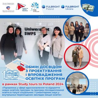 В рамках Study tours to Poland 2024 “Підтримка у сфері вдосконалення та відкриття нових освітніх програм та програм післядипломної освіти в галузі соціальних і гуманітарних наук у внутрішньо переміщених закладах вищої освіти” з 17 по 23 березня 2024 року у Варшаві відбулись зустрічі