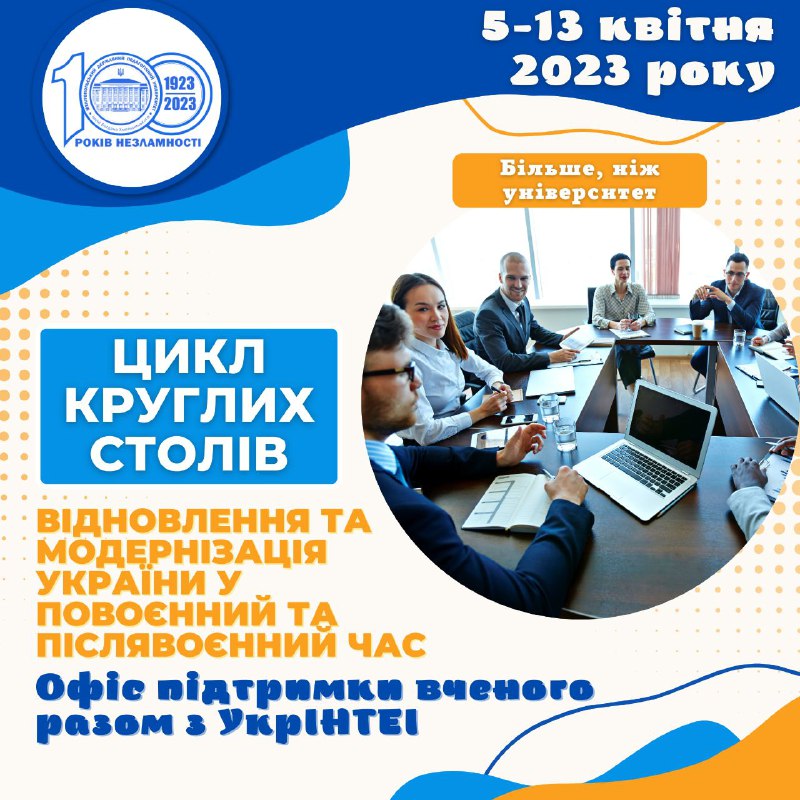Офіс підтримки вченого разом з УкрІНТЕІ ініціює проведення ІІІ Етапу Циклу круглих столів «Відновлення та модернізація України у повоєнний та післявоєнний час».