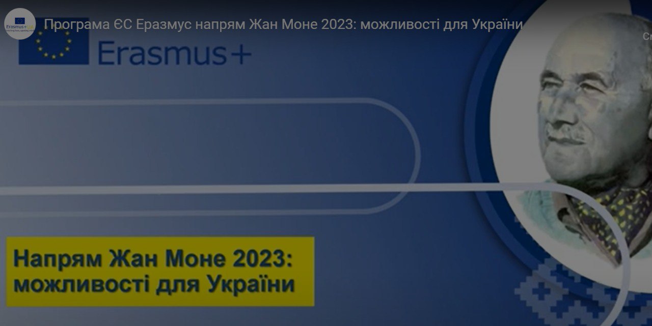 На вебсайті Національного Еразмус+ офісу в Україні розміщені відео та презентації щодо поточного оголошеного Конкурсу на 2023 р. за напрямом Жан Моне.